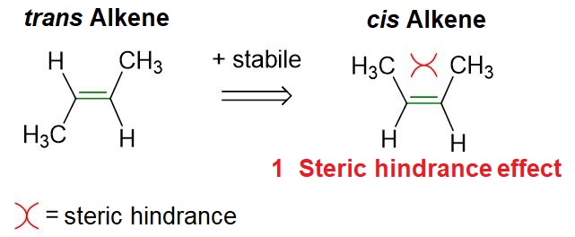In the case of disubstituted alkenes, such as but-2-ene (that is, with one hydrogen and one substituent on each carbon involved in the double bond), we can say that: