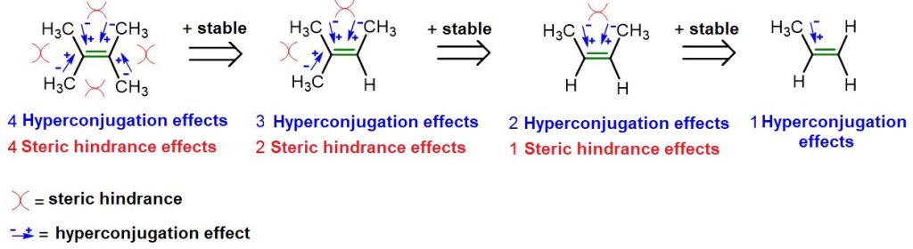 Figure 11. Hyperconjugation and hindrance effects in alkenes