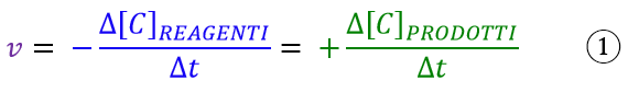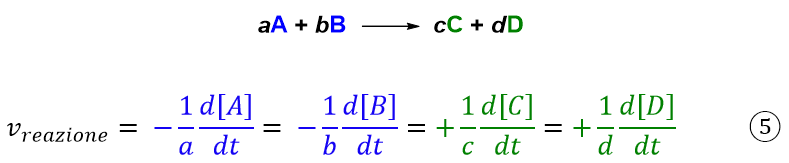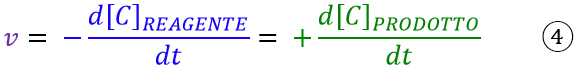 In sintesi possiamo definire la velocità di una reazione come la derivata rispetto al tempo della concentrazione di una delle specie che prendono parte alla reazione divisa per l’appropriato coefficiente stechiometrico e trasformata in numero positivo.