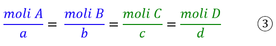 La ragione per cui bisogna dividere per i coefficienti stechiometrici è la stessa che nel caso dei rapporti ponderali nelle reazioni chimiche, dove per la stessa generica equazione si può scrivere l’espressione: