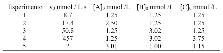 Per la reazione generica A + B + C → prodotti si sono ricavati i dati seguenti