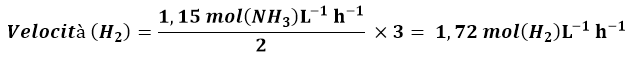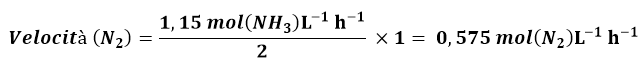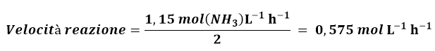 La velocità di reazione, secondo la 2, si potrà calcolare dalla velocità di formazione di NH3 diviso il suo coefficiente stechiometrico: