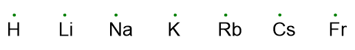 Per esempio il simbolo di Lewis dell’idrogeno è costituito dalla lettera H con un singolo elettrone spaiato (vedi Figura 2); questo perché l’idrogeno ha un unico elettrone nel suo orbitale 1s. Tuttavia lo stesso elettrone spaiato sarà posseduto da tutti gli altri elementi dello stesso gruppo 1. Questo perché, come già detto, i simboli di Lewis riportano solo gli elettroni di valenza, mentre gli elettroni più interni non vengono considerati. Quindi il Litio pur avendo 3 elettroni in tutto, verrà comunque indicato con un elettrone spaiato perché i due elettroni interni nell’orbitale 1s non sono elettroni di valenza, mentre l’elettrone di valenza è nell’orbitale più esterno 2s. Il sodio avrà il suo elettrone di valenza nel 3s e così via.