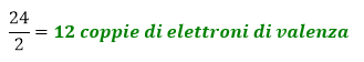 Dividiamo tale somma per due per ottenere le coppie di elettroni da sistemare intorno agli atomi.