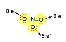 Tornando al nostro esempio, ad N servono 8 elettroni per essere stabile e così anche ai 3 ossigeni, quindi la somma degli elettroni degli ottetti è data da 4×8= 32 elettroni, che diviso 2 danno 16 coppie di elettroni. La differenza tra queste coppie e quelle di valenza (12), ci dà gli elettroni che partecipano ai legami chimici.