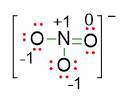 Tornando alla molecola di NO3–, il calcolo delle cariche formali per la nostra struttura di Lewis sarebbe: