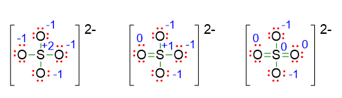Allo scopo di capire meglio l’utilità del calcolo delle cariche formali, prendiamo come esempio la molecola di SO42- . In questo caso potremmo essere incerti su tre possibili strutture di Lewis, perché non sappiamo se lo zolfo ha ottetto completo o ottetto espanso a 10 o ancora a 12 elettroni.