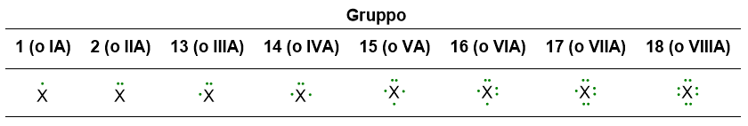 Nella tabella che segue (Tabella 1) si riassumono i simboli di Lewis per i gruppi degli elementi principali.