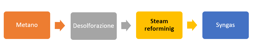 Siccome la reazione avviene in presenza di un catalizzatore, occorre eliminare eventuali tracce di composti solforati presenti nel materiale di partenza per la sintesi. Dopo la desolforazione si può operare lo steam reforming. I passaggi sono riassunti nello schema seguente prendendo il metano come materiale di partenza.