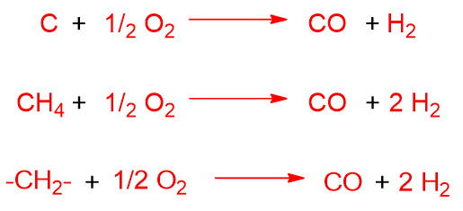 Anche in questo processo possono avvenire delle reazioni indesiderate come la completa ossidazione, la formazione di CO2 dal CO e la formazione di acqua da H2 e O2.