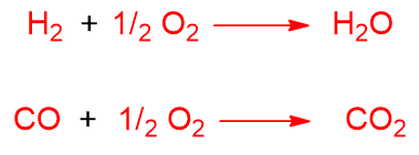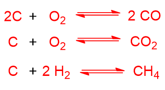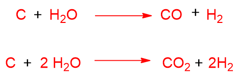 Dalla reazione di sopra si vede come il rapporto CO2/CO aumenta con lāaumento della quantitĆ di acqua. Inoltre se si aumenta la quantitĆ di acqua, si può far avvenire anche la seguente reazione.