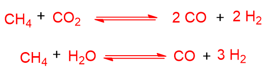 Il calore prodotto dallāossidazione parziale può promuovere proprio le reazioni di steam reforming e dry reforming, viste prima. Tali reazioni non fanno altro che arricchire il gas di sintesi. Rivediamole nel caso del metano: