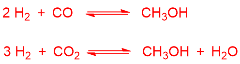 Il syngas può essere usato per produrre metanolo secondo le reazioni: