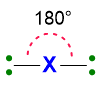 Dunque è la repulsione delle coppie di elettroni a determinare la forma della molecola. Facciamo un esempio, se abbiamo due coppie di elettroni intorno all’atomo centrale, non importa al momento se sono coppie di legame o solitarie, tali coppie si disporranno in modo da stare il più lontano possibile spazialmente, quindi formando un angolo di 180° l’una dall’altra (Figura 3). Di conseguenza, la disposizione spaziale di tali coppie sarà dunque lineare.