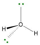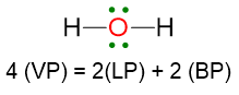 Un esempio per il caso LP ≥ 2, ma VP < 5 è la molecola di acqua. La struttura di Lewis è la seguente: