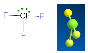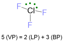 Un esempio per il caso LP ≥ 2, ma VP ≥ 5 è la molecola di ClF3, per la quale la struttura di Lewis e il conteggio delle coppie di elettroni sono le seguenti: