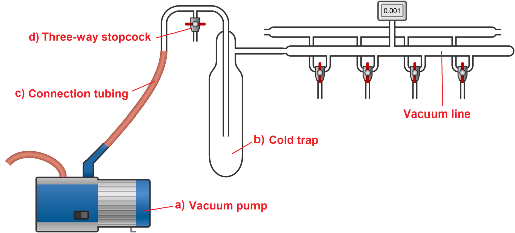 The diagram below illustrates these four main components of the vacuum line.